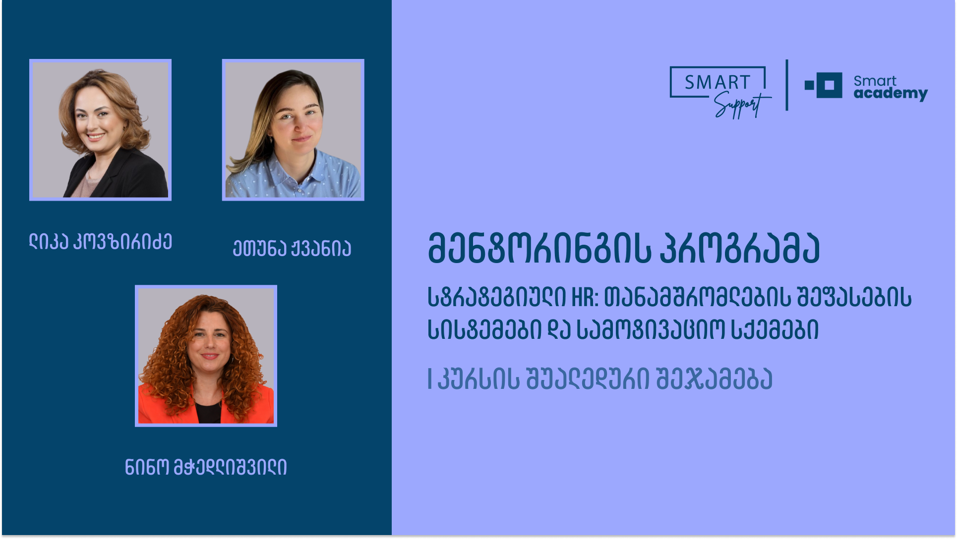 “საინტერესო, საჭირო ინფორმაციით დატვირთული კურსია. ამ ეტაპისთვის შემიძლია გამოვარჩიო საბონუსე სისტემების თემა, მათი განსხვავებებისა და დაგეგმვის გზების განხილვა. რაც ძალიან მნიშვნელოვანია ჩემთვის, კარგად განსაზღვრული პროგრამაა, გვყავს მცოდნე ტრენერები და აქტიურ პრაქტიკულ ნაწილს მოიცავს კურსი.”