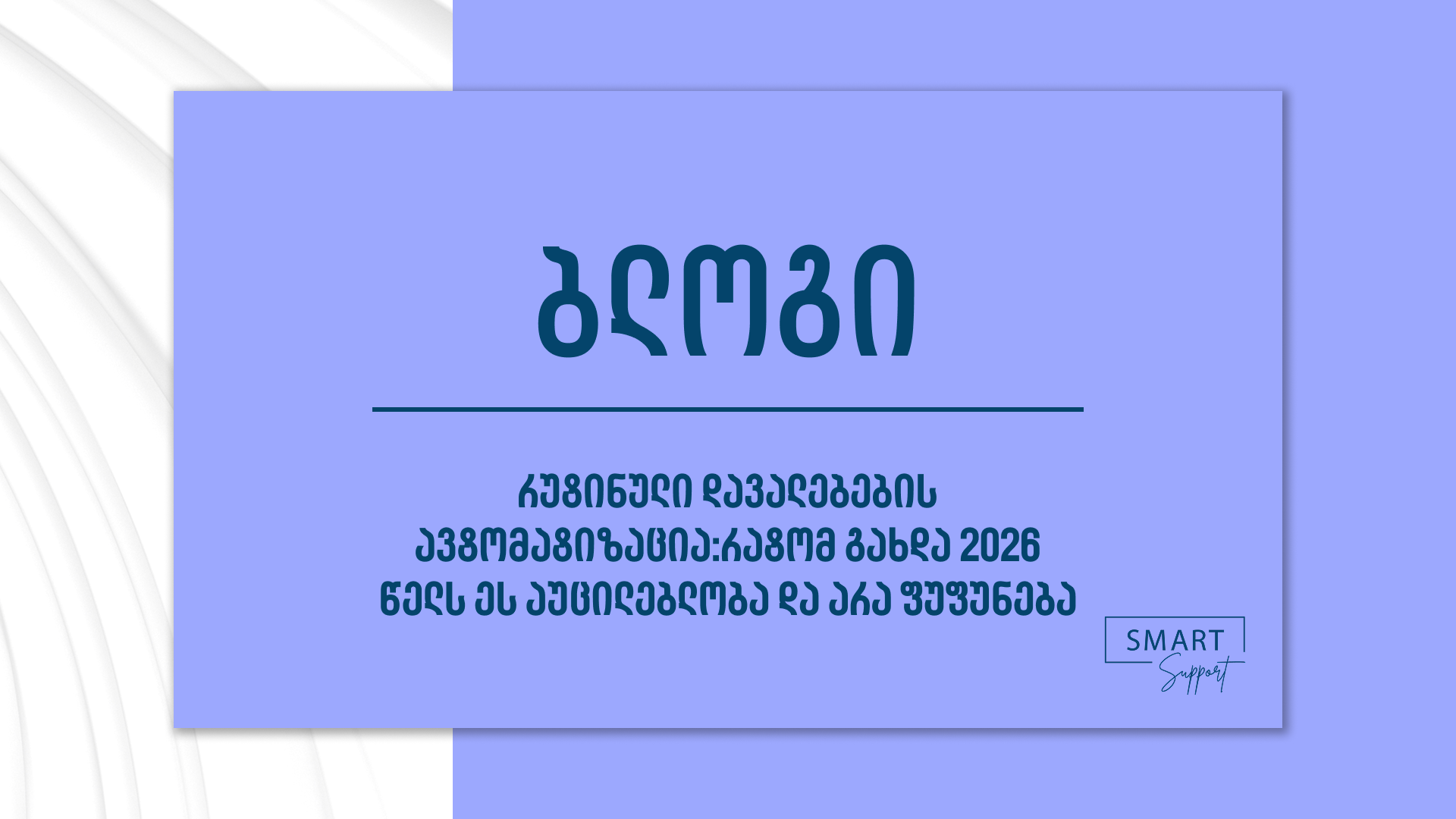 რუტინული დავალებების ავტომატიზაცია: რატომ გახდა 2026 წელს ეს აუცილებლობა და არა ფუფუნება? რუტინული დავალებების ავტომატიზაცია: რატომ გახდა 2026 წელს ეს აუცილებლობა და არა ფუფუნება? smartsupport2026-04-14T18:21:39+04:00თებერვალი 25, 2026|