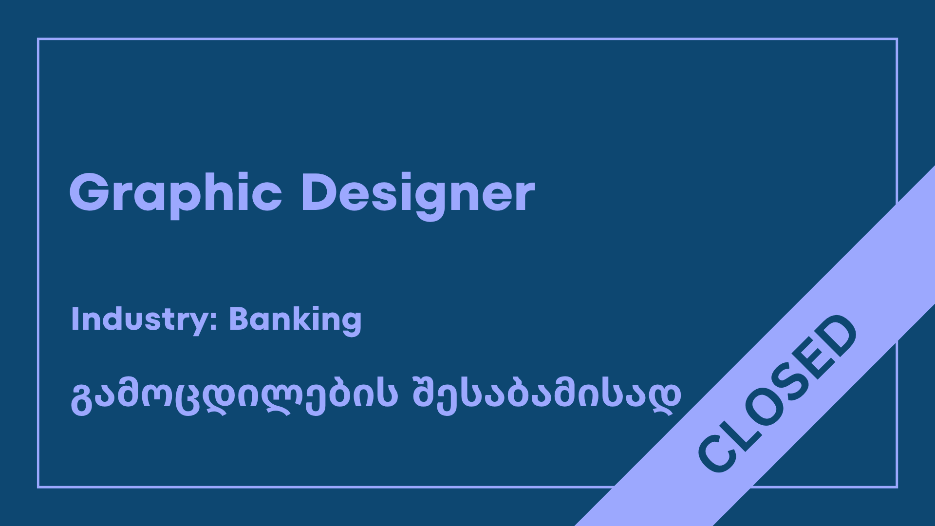 - საკვალიფიკაციო მოთხოვნები: მინიმუმ 2 წლიანი სამუშაო გამოცდილება გრაფიკული დიზაინის მიმართულებით (სასურველია სააგენტოში ან ფინანსურ/ტექნოლოგიურ სექტორში მუშაობის გამოცდილება).